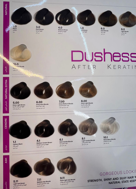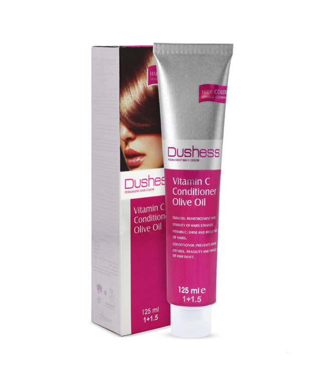 رنگ موی دوشس، یک رنگ موی دائمی است که می توانید به کمک آن رنگ موی خود را تغییر داده و به رنگ دلخواه خود در بیاورید و تیره تر یا روشن تر نمایید. قدرت پوشش رنگ موی دوشس عالی بوده و کاملا پایدار است. به خاطر داشتن غلظت و تراکم بالای رنگدانه قادر است تارهای مو را پوشش دهد و رنگی با جلوه کاملا طبیعی و زیبا بیافریند. پیگمنت ها یا رنگدانه های موجود به علت خلوص بالا و کوچک بودن ذرات آن با کمی باز شدن کوتیکول به راحتی به داخل مو به صورت عمیق نفوذ میکند و با وصل شدن به صورت قوی آن به درون تارهای مو نفوذ کرده و علاوه بر ایجاد رنگ های یکنواخت و پوشش 50% تا 100% باعث دوام رنگ مو می گردد. همچنین پایین بودن میزان آمونیاک رنگ مو ضمن عملکرد سریع به ساختار مو آسیب نمیرساند و بنابر این از موخوره خشکی و شکنندگی تارهای مو جلوگیری میکند از سایر مزیت های این رنگ مو می باشد. این محصول به خاطر داشتن روغن زیتون و ویتامین E، امگا 6، امگا 3 و اسید های چرب موجود در روغن گیاهی و توانایی جذب آن در ساختار مو و تغذیه آن، علاوه بر براقیت و نرمی موها استحکام تارهای مو را تقویت می سازد.