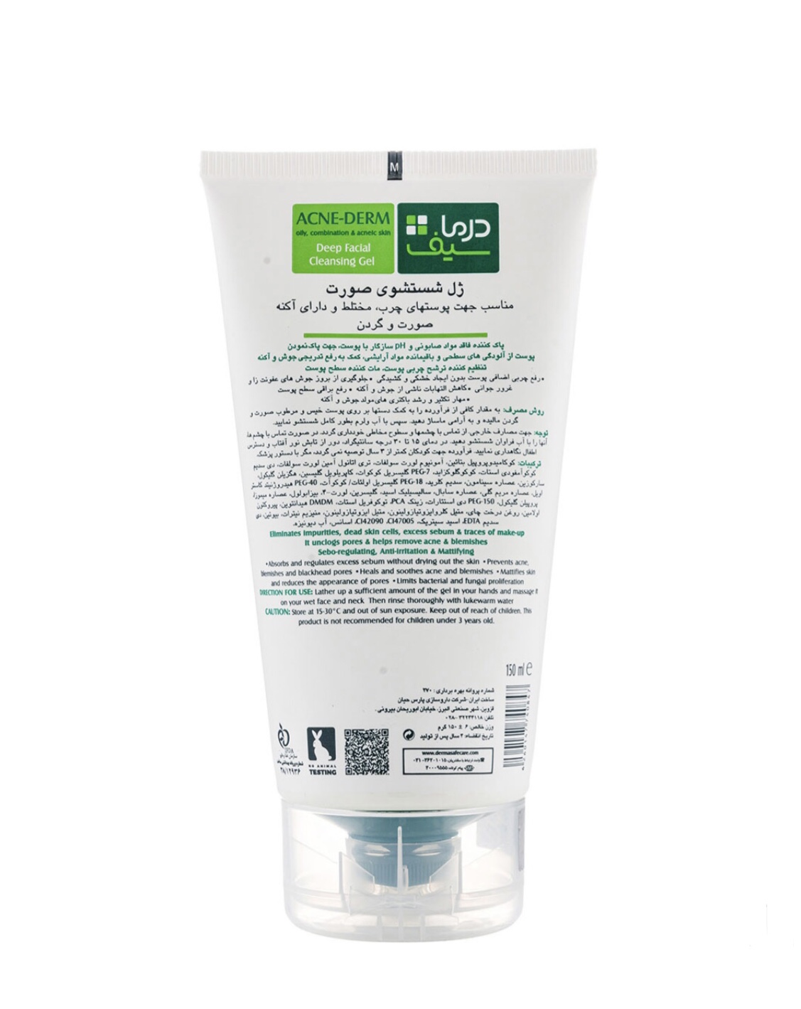 ژل شستشوی صورت و گردن مناسب پوست های چرب مختلط و دارای آکنه 150میل درما سیف