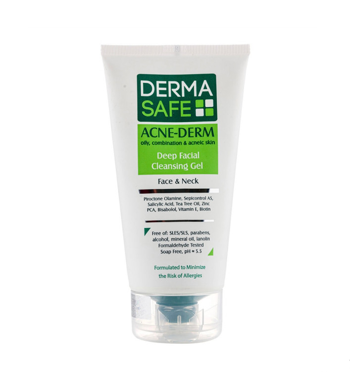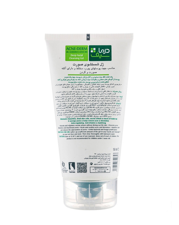 ژل شستشوی صورت و گردن مناسب پوست های چرب مختلط و دارای آکنه 150میل درما سیف