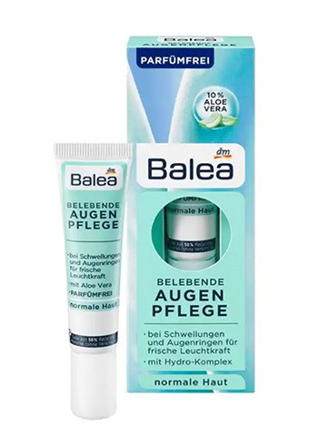 کرم دور چشم حاوی آکوا و آلوئه ورا باله آ، فاقد عطر و رنگ می باشد . این کرم پوست حساس اطراف چشم را به شدت مرطوب می کند و به آرامی از آن ها مراقبت می کند. همچنین از چشم ها در برابر اشعه ماوراء بنفش محافظت می کند.