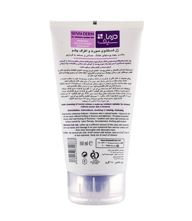 ژل شستشوی صورت و اطراف چشم مناسب پوست های خشک حساس و مستعد قرمزی درما سیف